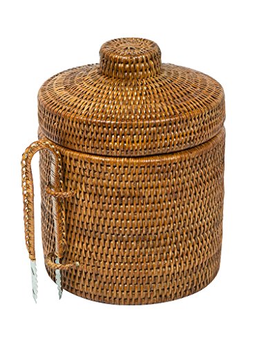 -. Title : La Jolla Rattan Ice Bucket with Ice Tongs, Honey Brown