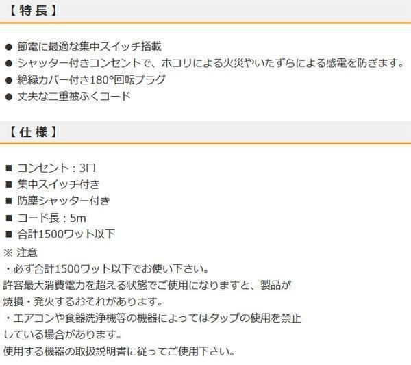 fk094igrjsシャッター付きコンセントで、ホコリによる火災やいたずらによる感電を防ぎます サイズ 個装サイズ:9×22×5cm 重量 個装重量:440g 生産国 中国 節電に最適な集中スイッチ搭載の節電タップ シャッター付きコンセントで、ホコリによる火災やいたずらによる感電を防ぎます