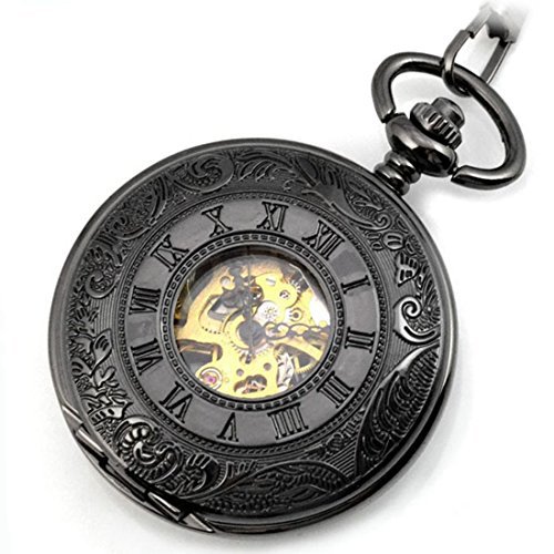 -. Title : WZC Black Vision Tungsten steel Roman Numerals Mechanical Pocket Watch