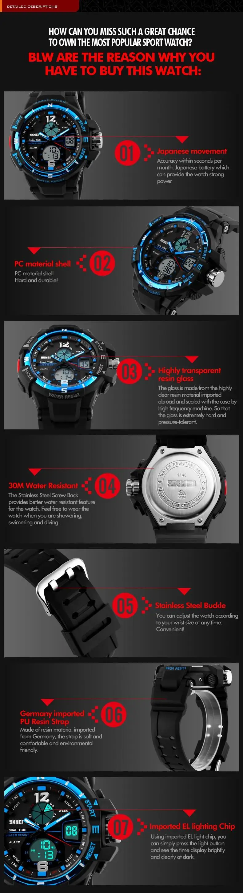 SKMEI Fashion Watch Men G Style Waterproof LED Sports Military Watches Shock Men's Analog Quartz Digital Watch relogio masculino
