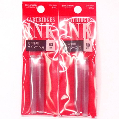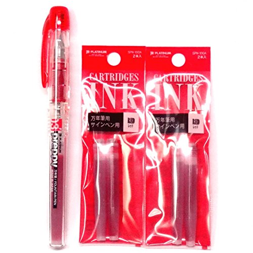 -. Binding : Office Product -. Brand : Platinum -. Color : Red -. EAN : 4562498404822 -. Feature : It is an authentic fountain pen of the cartridge-type which attached the alloy to the nib. / The alloy of a nib reduces friction with paper and realizes a smooth feel of writing. / Ink Cartridges: 2 cartridges×2 Packs/total 4 cartridges / Water-based ink / Ink Color : Red -. Label : Platinum -. Manufacturer : Platinum -. MPN : PPQ-200-#11/SPN-100A#11 2p -. PartNumber : PPQ-200-#11/SPN-100A#11 2p -. ProductGroup : Office Product -. ProductTypeName : WRITING_INSTRUMENT -. Publisher : Platinum -. Studio : Platinum -. Title : Platinum Fountain Pen, Preppy, Fine Nib, Red(PPQ-200-#11) + Ink Cartridges SPN-100A#11 (Red) Set (Japan Import) [Komainu-Dou Original Package]