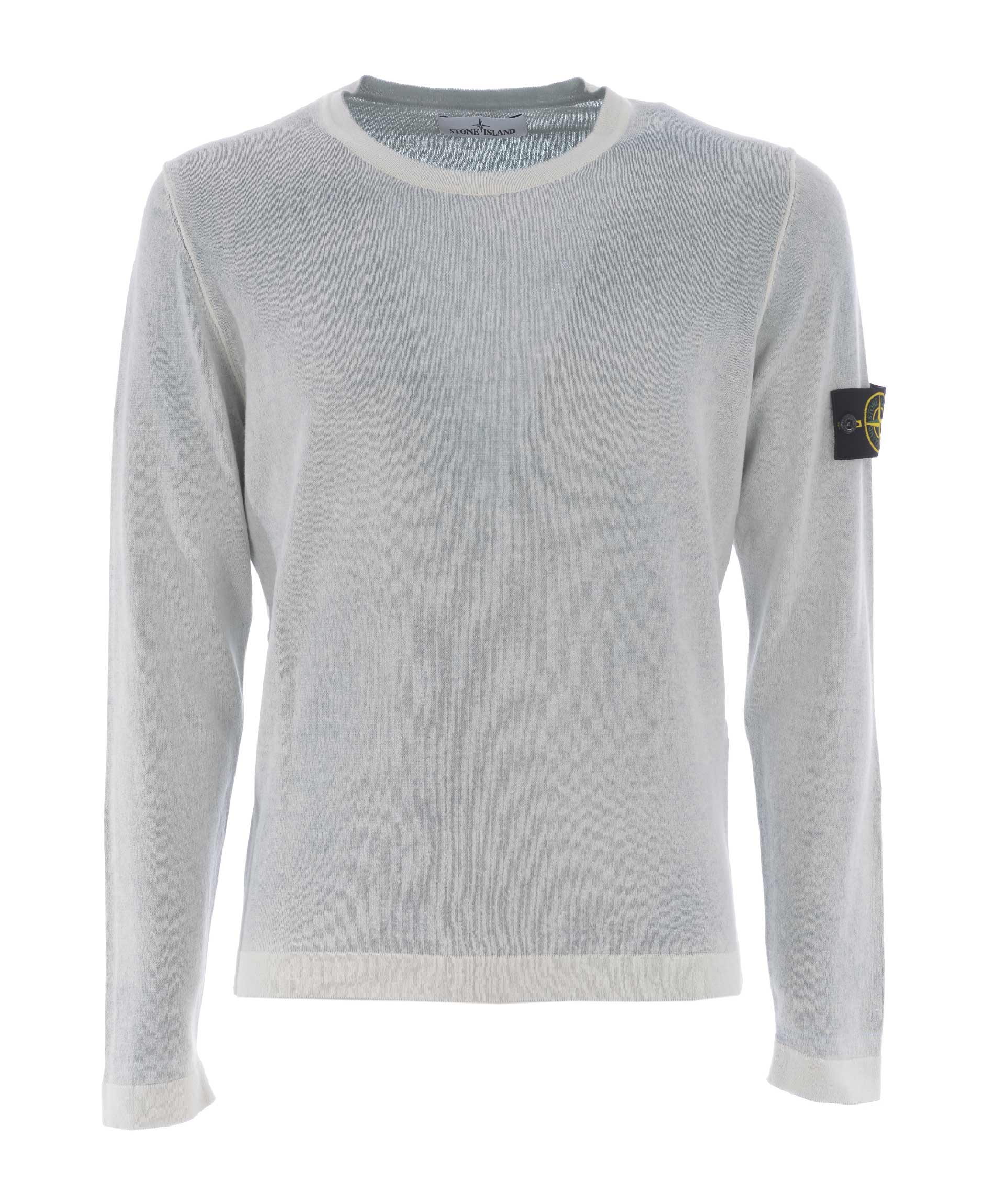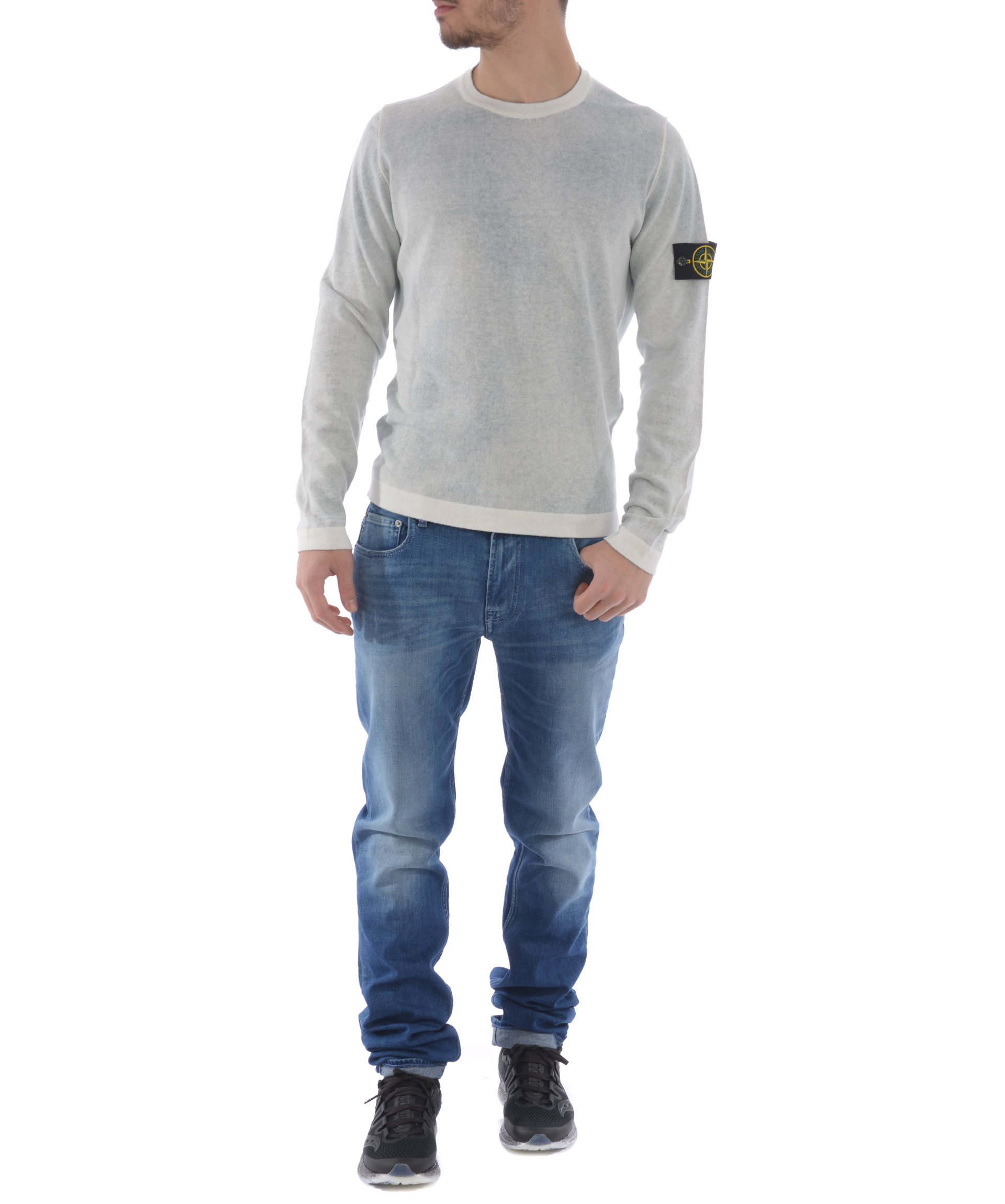 Maglia Stone Island reversibile in cotone, Ghiaccio disomogeneo effetto spruzzato da un lato, Grigio al lato opposto. Girocollo a costine. Manica lunga. Polsi e fondo a costine. Patch logo in lana removibile. Misura in foto S 100% cotone