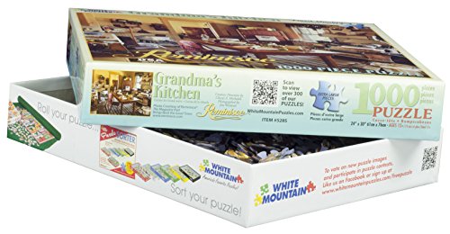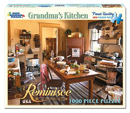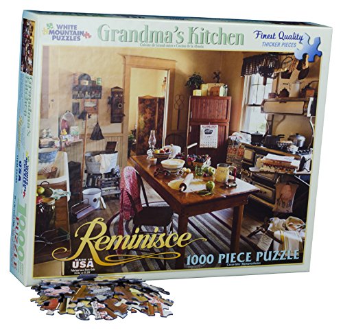 -. Binding : Toy -. Brand : White Mountain Puzzles -. EAN : 0783719785719 -. Feature : FAMILY TIME: Jigsaw puzzles are a great family activity. Enjoy some quality time and have some fun with your family while putting together one of White Mountain Puzzles unique puzzles. / PICTURE PERFECT: This puzzle is covered with the cooking tools and other implements from an earlier time. Reminisce Magazine featured this nostalgic kitchen on the cover of its Oct-Nov 2008 issue and now it's a 1000 piece jigsaw puzzle. / THE PIECES: Grandma's Kitchen puzzle consists of 1000 unique interlocking pieces that are made of sturdy blue chipboard on recycled paper. It has extra large pieces making them easy to pick up. / FINISHED PRODUCT: When you complete this exquisite picture puzzle of Grandma's Kitchen by White Mountain Puzzles, you will have a colorful 24" x 30" picture puzzle. This would make a great gift for any Grandma. / HAPPINESS GUARANTEE: White Mountain Puzzles are proudly manufactured in America and come with a 100% customer satisfaction guarantee. All of the 1,000 piece jigsaw puzzles are made of premium blue chipboard. -. IsAdultProduct : 0 -. ItemPartNumber : 528PZ -. Label : White Mountain Puzzles, Inc. -. LegalDisclaimer : Choking Hazard. Many small pieces. For children over 5 years old. -. Manufacturer : White Mountain Puzzles, Inc. -. Model : 528 -. MPN : 528PZ -. NumberOfItems : 1 -. PackageQuantity : 1 -. PartNumber : 528PZ -. ProductGroup : Toy -. ProductTypeName : TOYS_AND_GAMES -. Publisher : White Mountain Puzzles, Inc. -. Studio : White Mountain Puzzles, Inc. -. Title : White Mountain Puzzles Grandma's Kitchen - 1000 Piece Jigsaw Puzzle -. UPC : 724819251469