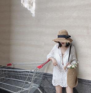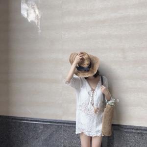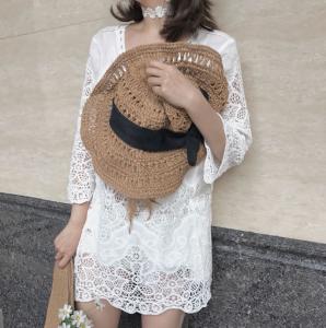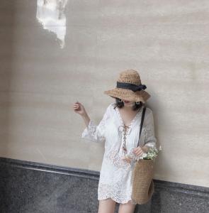 ホワイト チュニック レーストップス 白ブラウス 編み上げ 春夏 透け感 ミニワンピ コットン ガーリー プチプラ