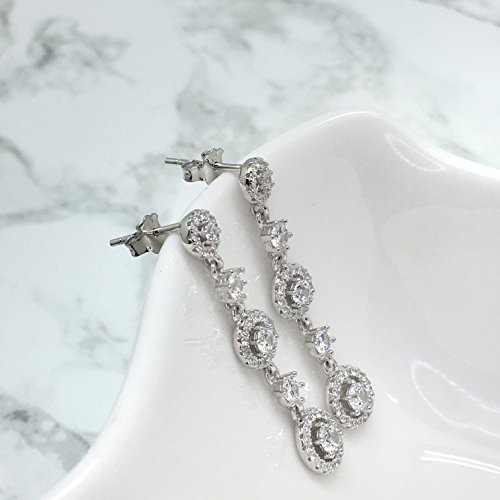 -. Title : Rhodium Plated Sterling Silver Cubic Zirconia Halo Stations Chandelier Dangle Drop Earrings