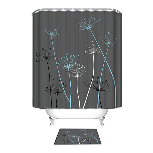 Beauty Decor Dandelion Thistle Botanical Prints Waterproof Polyester Fabric Shower Curtain with Washable Indoor Mat-12 Hooks