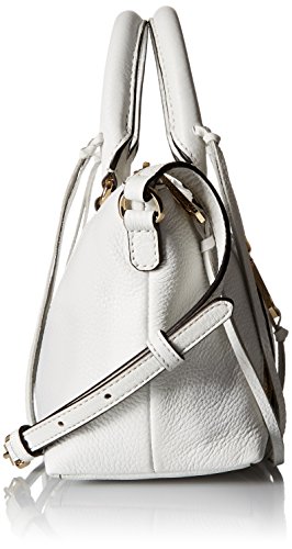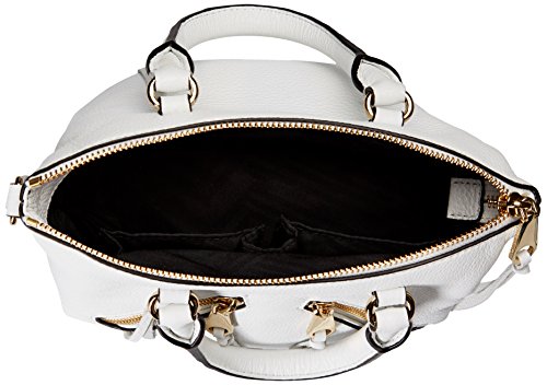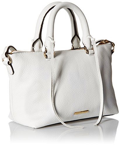 Micro cross-body bag in pebbled finish featuring tassel trims and diagonal zip pockets at front
