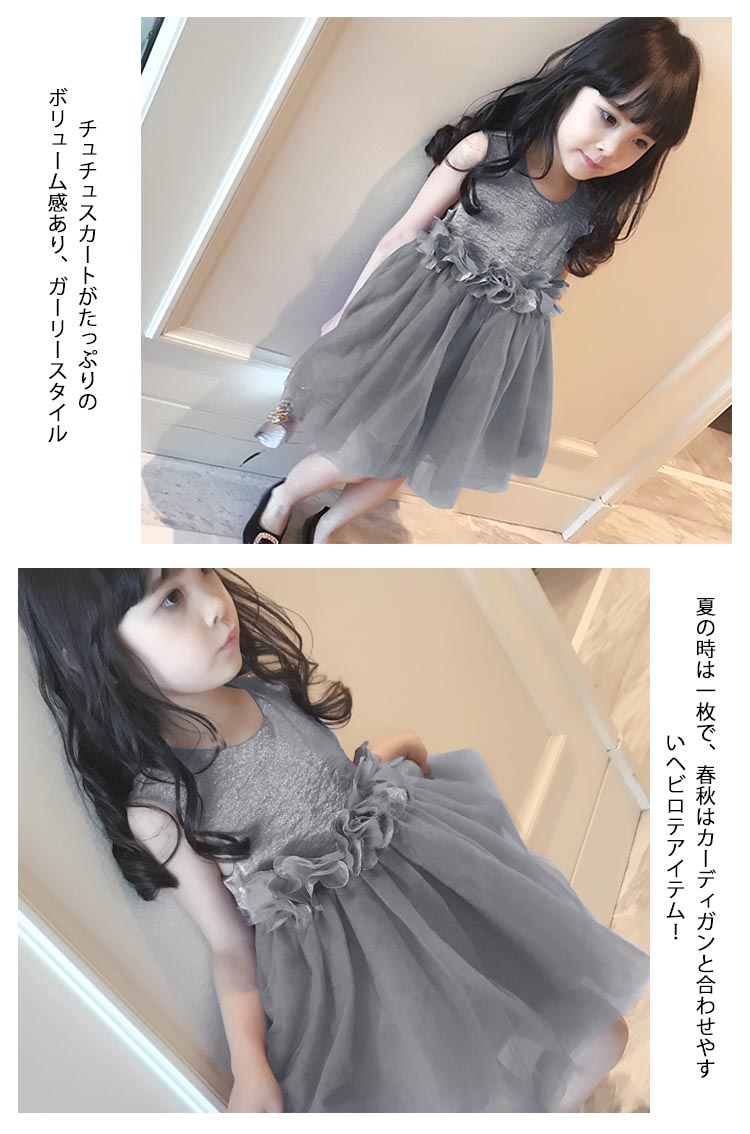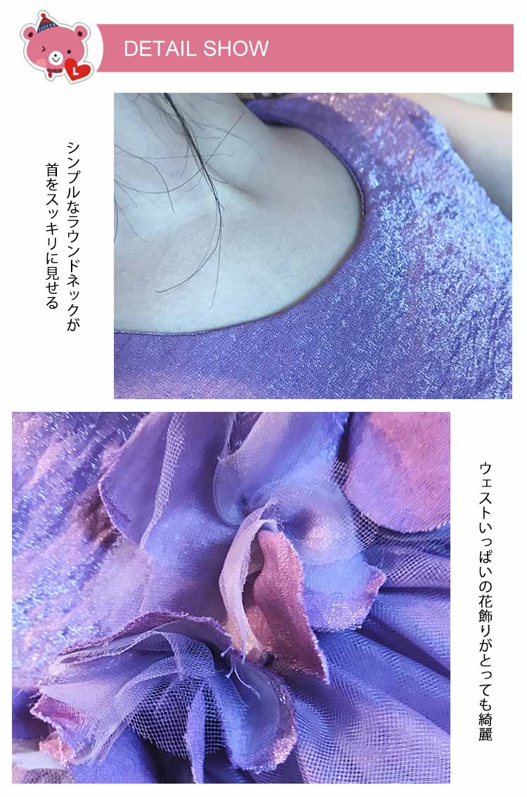 | キラキラ輝くパーティードレス!上品な素材で仕上げたこのワンピースは光加減によって、表情が違いますウェストの花飾りがアクセサリーいらずの華やかさチュチュスカートがたっぷりのボリューム感あり、ガーリースタイル夏の時は一枚で、春秋はカーディガンと合わせやすいヘビロテアイテム! | |