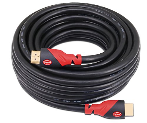 A-TECH 66ft Ultra High Speed hdmi cables in red with built-in extender Support Ethernet ,ARC,3D,1080p and make in CL3 function 24k golden plated connector - Full Hd [Latest Version]