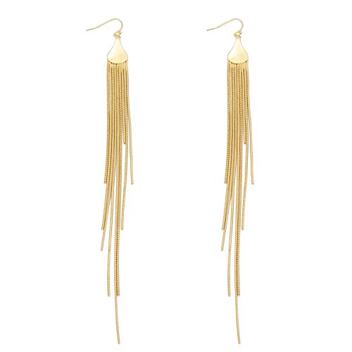 Gold tone, metal chain fringe design with a polished finish