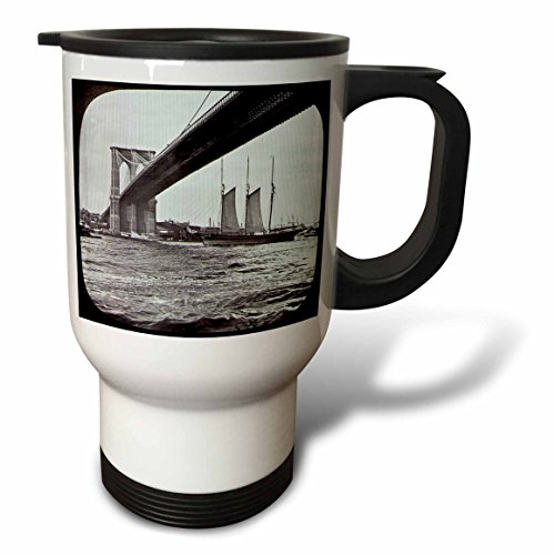 3dRose Brooklyn Bridge with Sailboat, East River New York City, Stainless Steel Travel Mug, 14-Oz