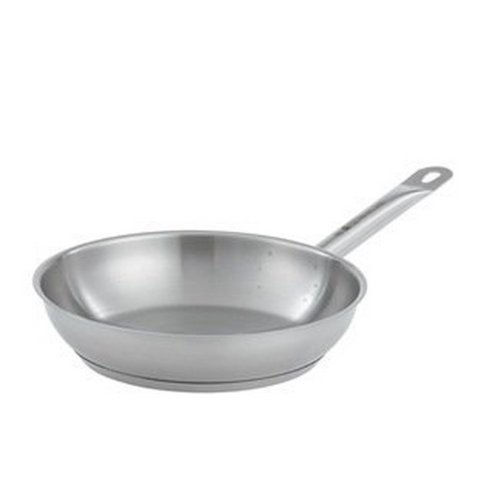 -. Feature : Fry pans are induction ready with an aluminum-clad bottom for quick and even frying of all foods / The durable spot-welded handle means this fry pan will be a long-lasting edition to your kitchen / Constructed of durable high quality 21-gauge stainless steel / Ideal for frying, sautéing or searing / Measures 2-inch height