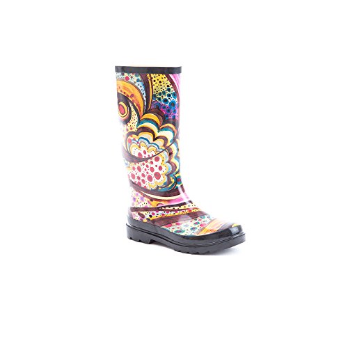 Product DescriptionOur Monet rain boots features rubber upper with a multi colored abstract print and a rounded toe.0