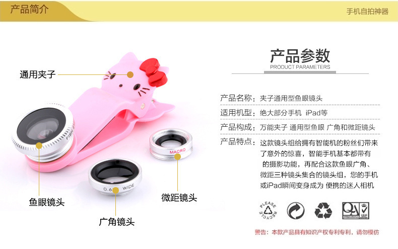 Lens Size: Fisheye: 2.5 * 2.5 * 1.4CM Macro 1.8 * 1.8 * 0.5 Wide-angle 2.0 * 2.0 * 0.5