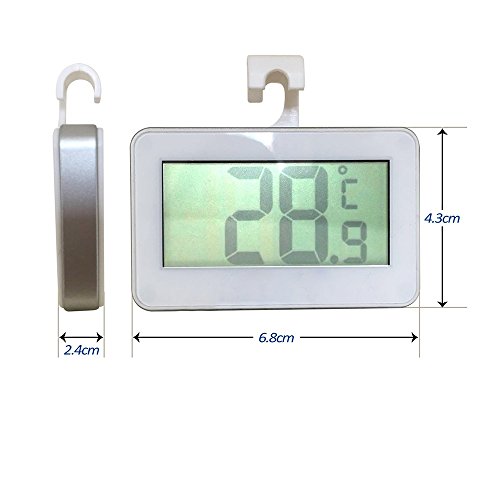 Product Description Easily-operated and simple freezer thermometer This IVIDA digital freezer thermometer monitor could test the freezer's temperature and also your indoor temperature under the common environment under -20 ~ 60 degrees Celsius. Besides, its hook offers you flexible replacements when you need to test your food's storage environment of your refrigerator. These applied and convenient functions can help you have a better detection of your freezer. Specifications Measuring temperature range: -20℃ ~ 60℃ Accuracy: ±1℃(±2℉) Unit: degree Celsius or degree Fahrenheit Power: 1 * 3V CR2032 button battery (included) Size: 2.64 * 1.65 * 0.43 inches Weight: 1.2 ounces Package: box Package contents: 1 x Freezer thermometer 1 x Instruction manual Tips 1. Operate it under the conduction of its introduction. 2. Do not soak it in water. 3. When the display is dim, please change the battery as the instruction shows and tighten the screws. 4. It needs about a minute for reaction about the temperature. 5. It is more suitable for a freezer or refrigerator. When you do not it to work, remember to shut down the power. 6. When it is over 60℃, the display shows HH.H, and if below -20℃, the display shows LL.L. 0