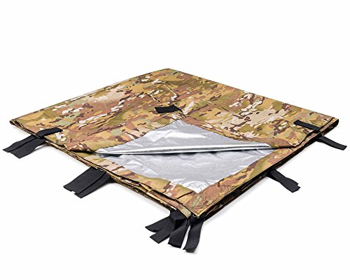 MULTI PURPOSE SURVIVAL SHELTER - This heavy-duty Multi-Cam tarp is undercoated with a proprietary aluminized polymer. This side reflects heat, creates a radiant barrier and can be used to signal for help.