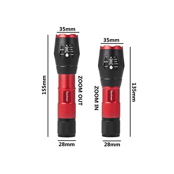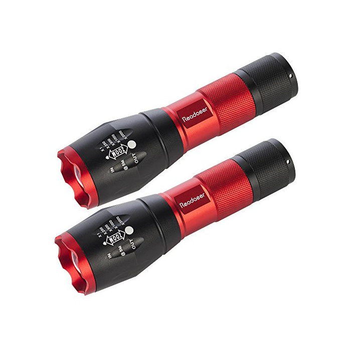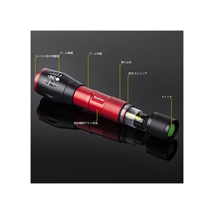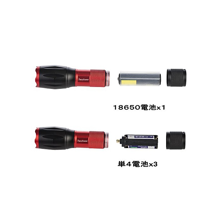 원본상품명: Readaeer CREE社製 CREE-T6搭載 超高輝度LED 中電 ハンディライト ズムフォカス機能付 軍事用 防水 防災 (レッド 2個セット)