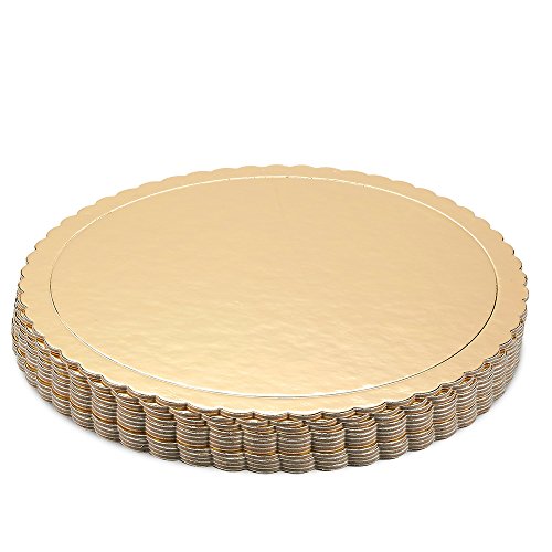 Cake Boards - 12-Piece Cardboard Scalloped Cake Circle Base, 10 Inches Diameter, Gold