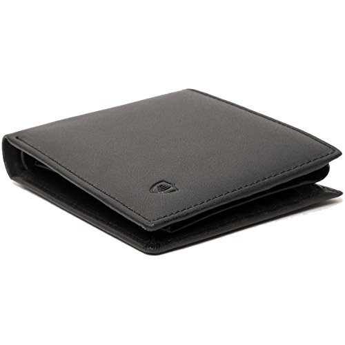 -. Feature : High quality, made with 100% genuine cowhide leather and tough stitching / Protect yourself independently tested and approved for 13.56 MHz frequency which credit cards operate / Sleek design: Extra capacity bi-fold design, 8 card slots and flip out ID window / Extra capacity bifold design - 8 card slots, flip out ID window, dual slots for paper money / Measures 4.5" x 3.5" x 0.5"