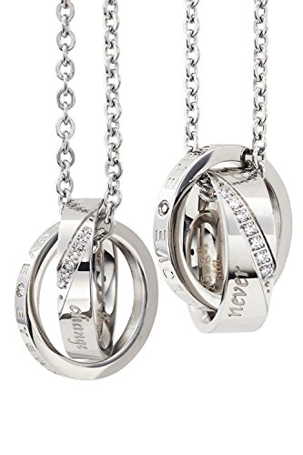 -. Feature : 【高級感漂うプレゼントボックス付き!】男女それぞれに収納用ケースとクリーニングクロスをお付けします。 / 肌に優しく変色やサビに強い優れた素材を使用!毎日身につけたいお揃いペアアクセサリーに最適! / 強く結ばれた愛を意味するダブルリングにNever ChangeとEternal Loveの刻印入り。 / シルバーカラーはどんなコーディネートにも馴染みます。常に身につけておきたいペアアクセサリーにぴったり! / 【素材】地金:316Lサージカルステンレス/IPコーティング、石:キュービックジルコニア