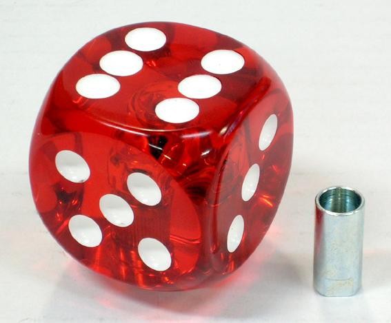 約5cm角の透明樹脂製のダイス(サイコロ)型のリアワイパーマスコットです。