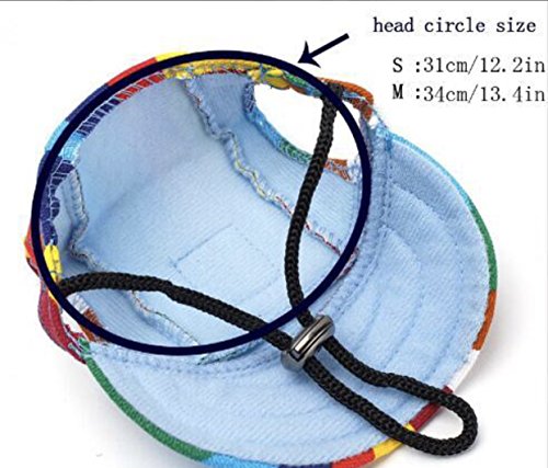 -. Feature : M(head width: 7.08" circumference:14.96") / Speacial Designed for SMALL, EXTRA SMALL DOG / With two holes at the top, breathable and comfortable / Sunbonnet design to protect pet's eyes from strong sunlight. / AJUSTABLE non-elastic chin/neck strap,loose or tight as your baby like.