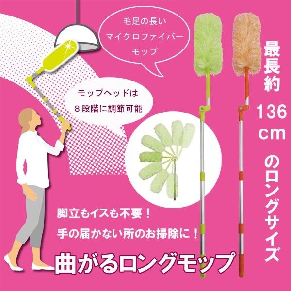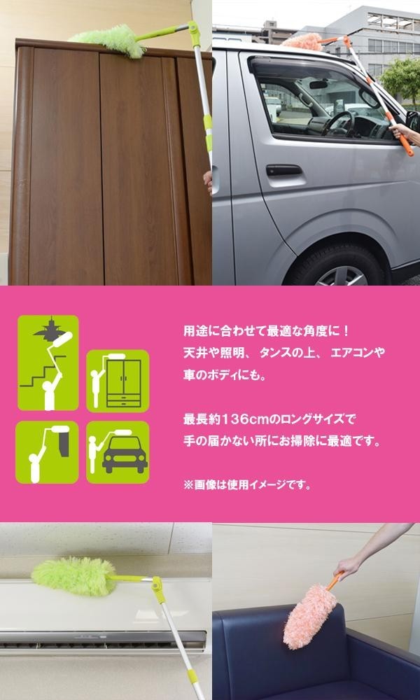 脚立も椅子も不要!そのまま、その場でラクラク届くんです!最長136cm、ヘッドは掃除用途に合わせて8段階に調節可能。天井や照明器具、たんすの上、エアコンなどのお掃除に最適です。 |