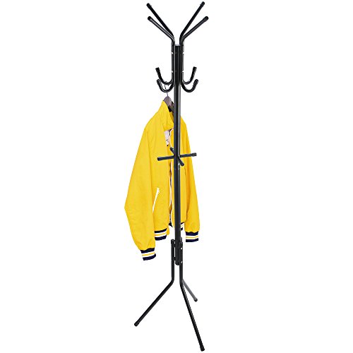 -. Feature : Stable metal clothes stand and hanger / Basic, durable and sturdy model for home and office / 12 convenient hooks for coats, hats and bags, umbrellas / Dimensions: 44,5*38*175 cm. Black powder coated steel / Fast assembly, compact packaging, color box with assembly instruction