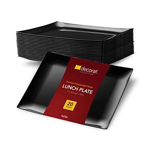 DECORAT Premium Quality Curved – Black – Rectangle Hard Plastic 9-Inch Lunch Plate 20 Ct. Disposable /Reusable