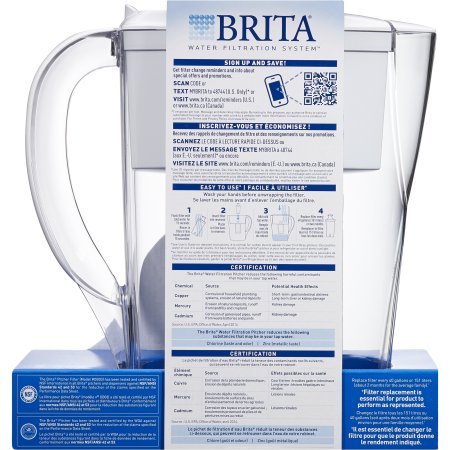-. Feature : One small, 6 cup Brita Space Saver Water Pitcher with 1 filter, White / Reduces chlorine taste and odor, to deliver great tasting water / Removes copper, mercury and cadmium, which can cause illness over time / Electronic filter indicator to notifies you when you need to replace the filter / Change filter every 40 gallons or approximately two months