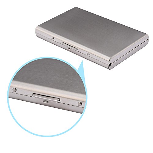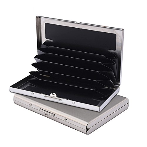 - Feature : Protect your cards from RFID scanners with classic credit card holder / Made of aluminum stainless steel materials, even the latch is constructed by strong metal which make it more durable than plastic / Thin and lightweight makes it easy to carry 6-7 cards in your pocket / Item size: 3.9 x 2.8 x 0.5 inches / It's a good item when on vacations or traveling overseas; It's suitable for using in public transportation and crowded places