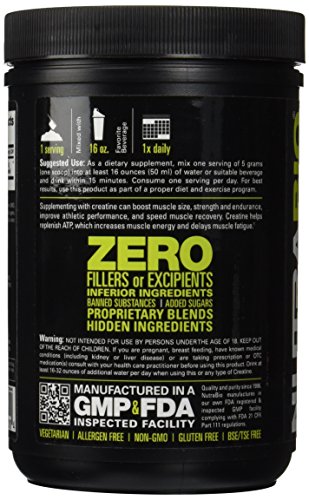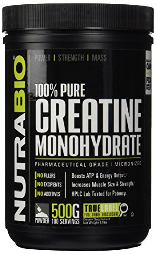 NutraBio 100% Pure Creatine Monohydrate Powder - 500 Grams - HPLC Tested, Micronized, Unflavored, No Additives or Fillers, GMP. Post Workout Muscle...