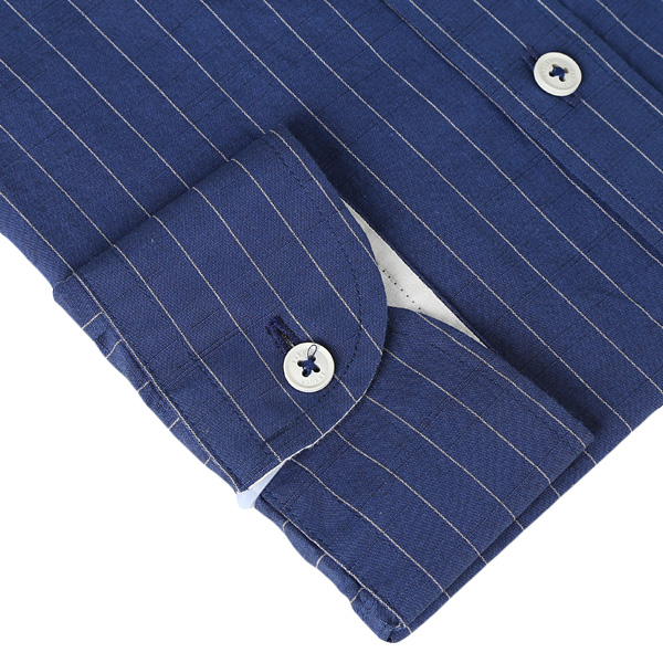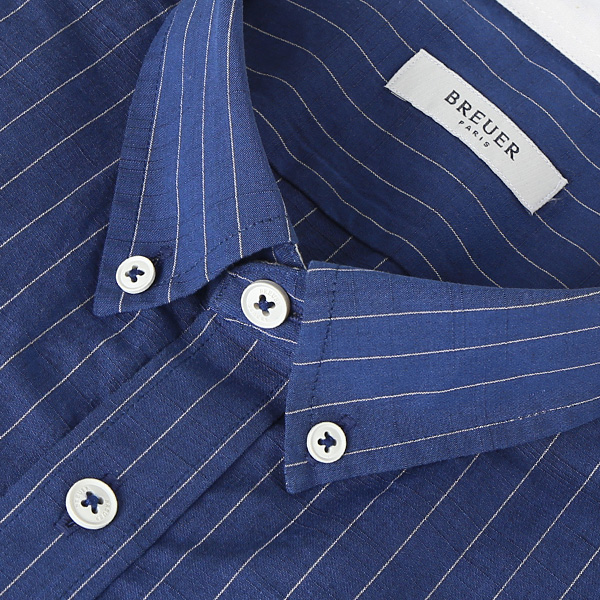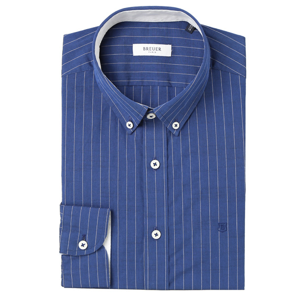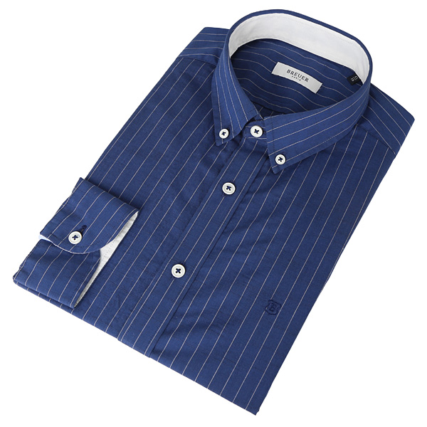 면 소재원단이며 브로이어 블루 크로스오버라인셔츠로 화이트 스트라이프짜임과