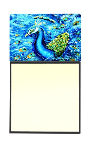 Caroline's Treasures Peacock Straight Up in Blue Refillable Sticky Note Holder or Postit Note Dispenser, 3.25 by 5.5", Multicolor