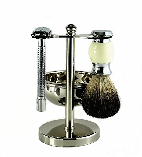 Edward London & Co. Premium Shaving Gift Set - 100% Super Fine Badger Brush, Classic Chrome Heavy Long Handle Safety Razor, Shaving Bowl &...