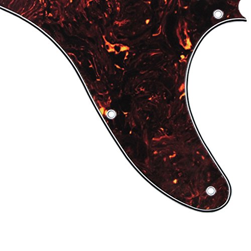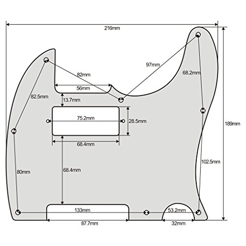 Product Description Feature:1. Telecaster style mini humbucker pickguard, normally fits to USA/Mexico Standard Telecaster guitar. (We have shown the dimensions for reference.)2. All materials are environmentally friendly, thermostability, no smell. Multi-layer plates are pressed under high temperature and pressures, to make them close integration between each layer, will not appear curly, deformation, or separation of different layers.3. Excellent product process ensure the edge of the smooth and structured.4. Two layers of protective films on the front of pickguards, anti-scratch to protect the guitar.Specification:a. Item: Tele style guitar mini humbucker pickguardMaterial: Pickguard made of 4Ply Real Tortoise Plate and PVC material.b. With standard 8 screw mounting hole pattern.c. Pickup hole is cut for a Seymour Duncan mini humbucker, hole size = 28.5mm x 68.5mm.d. The distance of the two pickup screws mounting holes = 75.2mme. Neckpocket cutout: 56mm; Bridge cutout: 87.7mmf. Color: Brown Tortoise Colorg. With protective film on the surface, while using please split it off.Package Includes:1 x Guitar pickguard 0