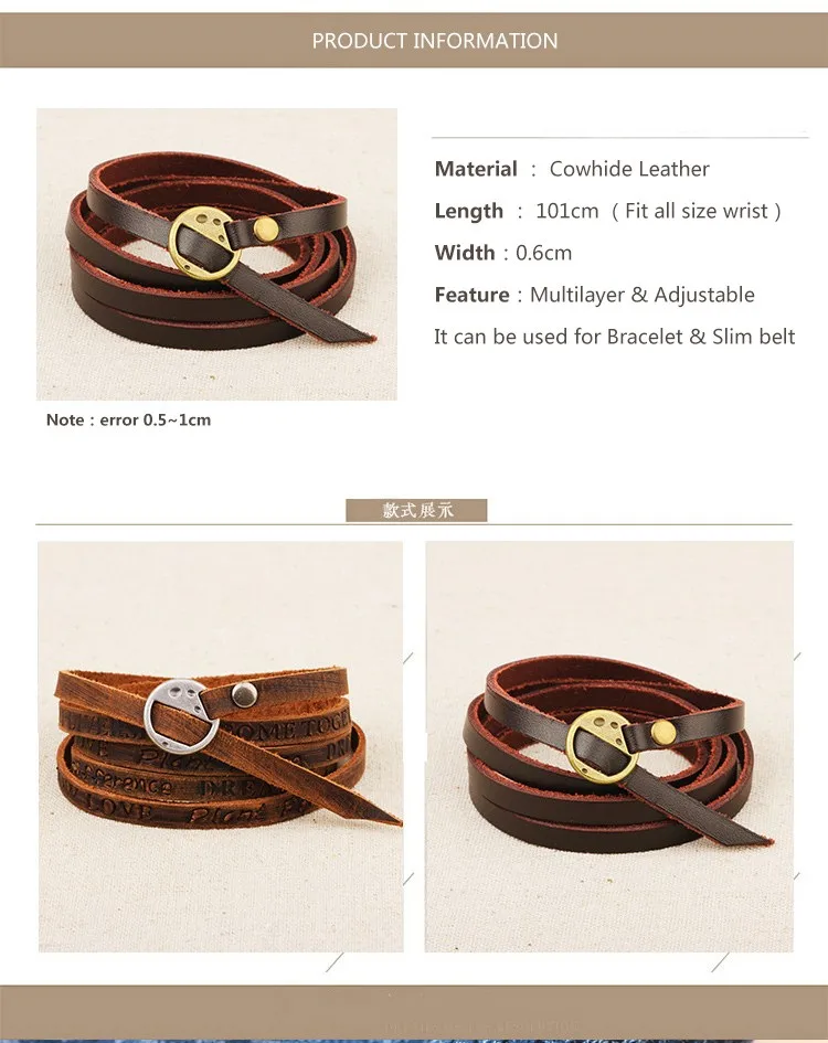 material:Genuine Cowhide Leather Bracelet Women