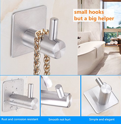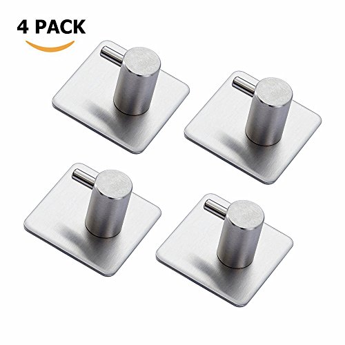 4 Pack Stainless Steel Premium Heavy Duty Hooks Towel/Robe 3M Self Adhesive Hooks for Kitchen Bathroom