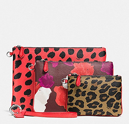 Product DescriptionPrinted coated canvas Zip closure, fabric lining Wrist strap attached Set of 3 Large pouch: 9 1/2" (L) x 7" (H) Medium pouch: 7 3/4" (L) x 5 1/2" (H) Small pouch: 5 1/2" (L) x 4 1/4" (H)0