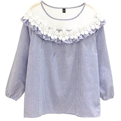 -. Feature : デコルテラインのレースが女性らしさを、花のモチーフがかわいらしさを表したカジュアルなシャツです。 / 袖口が絞ってあるのがポイント / ボトムにはジーンズでカジュアルに、パンツで軽快に、スカートにインして清楚に、ファッションが楽しめます。 / オフィス、デート、リゾートに、色々な場面で楽しめます。