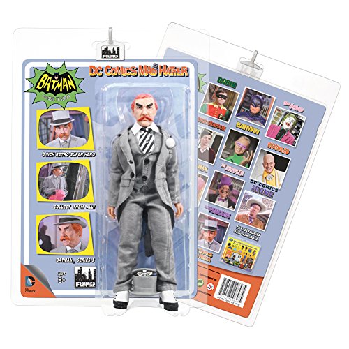 -. Binding : Toy -. Brand : Figures Toy Company -. Color : multi-colored -. EAN : 0885165945843 -. Feature : Batman Classic TV Series 8 Inch Action Figures Series 3: Mad Hatter / Includes an authentic cloth outfit & comes in a resealable plastic clamshell package that can be opened and closed without damaging anything. -. IsAdultProduct : 0 -. Label : Figures Toy Co. -. Manufacturer : Figures Toy Co. -. MPN : 29847 -. NumberOfItems : 2 -. PackageQuantity : 1 -. PartNumber : 29847 -. ProductGroup : Toy -. ProductTypeName : TOYS_AND_GAMES -. Publisher : Figures Toy Co. -. Size : 8" -. Studio : Figures Toy Co. -. Title : Batman 1966 TV Series Classic TV Series 3 Mad Hatter 8" Action Figure -. UPC : 728028298475