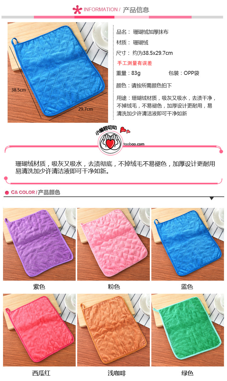 韩国擦地板抹布吸水不掉毛加厚拖地毛巾厨房洗碗布不沾油