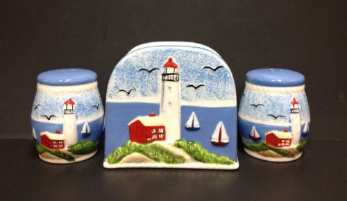 Tuscan Lighthouse Napkin Holder, Salt and Pepper Set