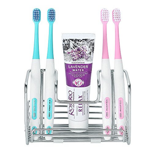 BasicForm Stainless Steel Toothbrush Stand Holder for Bathroom Vanity Countertops(Improved Version)