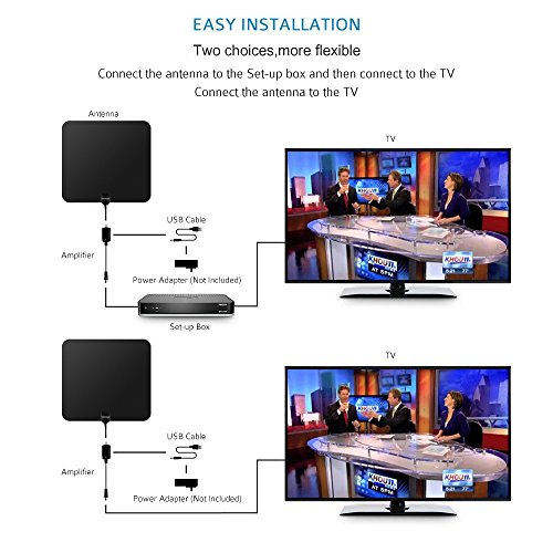 Amplified indoor HDTV antenna makes your life free, get rid of cable TV, enjoy your favorite channels without paying a cable fees. This HDTV antenna help people benefit from the power of technology to enjoy life better, easier and free. Specifications: 1) Size:13*11.8*0.02 in 2) Working Frequency : VHF(170-240Mhz) \ UHF(470-860Mhz) 3) Compatible with 720p, 1080i, 1080p/ ATSC 4) Power Supply Connector : USB 5) Impedance : 75Ω 6) Coaxial Cable : 13.2ft length 7) Connector Type : F Male 8) Polarization : Linear 9)Voltage:5V 10)Accessary :Amplifier Installation Steps: STEP 1: Stick the antenna on the window/wall/lay flat on the table STEP 2: Connect the antenna to 'ANT IN' on the back of any digital-ready TV or the set-top box. STEP 3: Scan Channels by selecting 'Menu' then 'Channel Search' and enjoy your free TV. If the digital TV antenna is not working as expected, pls try the following tips: 1. Pls make sure you have correctly connected the digital TV antenna to your HDTV or third-party HD receiver. 2. Re-scan for channels: In the TV's setup menu, set the mode to indoor TV antenna or air. Refer to the TV manual for detailed instructions. 3. Reposition the indoor TV antenna in a different location. It is suggested place it higher on a wall or closer to a window. Sometimes moving a few feet can make a difference. 4. Keep the TV antenna away from those big power consumption devices interference, such as air conditioner, refrigerator and microwave oven,etc. 5. Always remember re-scan for channels after moving the antenna. 0 |