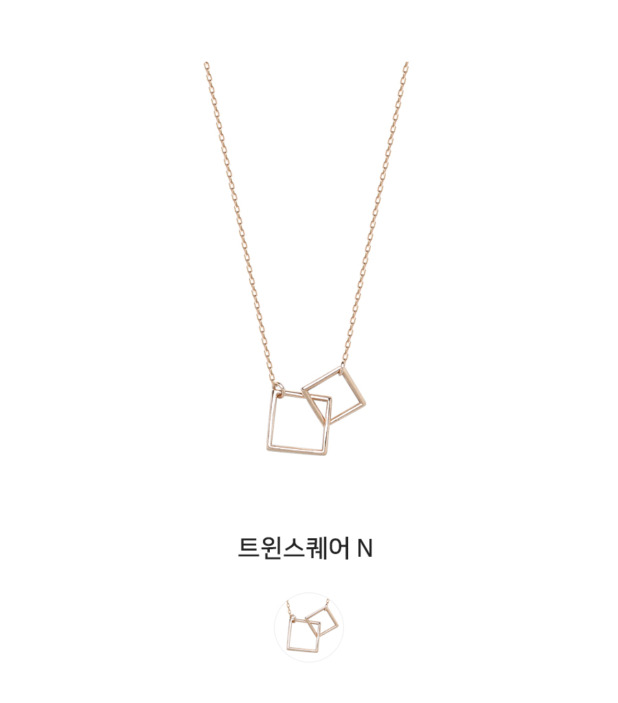 언제 어디서나, 부담없이 착용하기 좋은 심플하지만 세련미가 보이는 목걸이 입니다. 서로 다른 크기의 부드라운 라인으로 이루어진 스퀘어를 사용해 입체적이고 볼륨있는 스타일로 감각적이고 트렌디하게 활용하기 좋은 아이템입니다. 여러각도에서 보아도 섬세한 디자인이 돋보이며, 크기가 다른 스퀘어는 보는 각도에 따라 다르게 표현 될 수 있습니다.