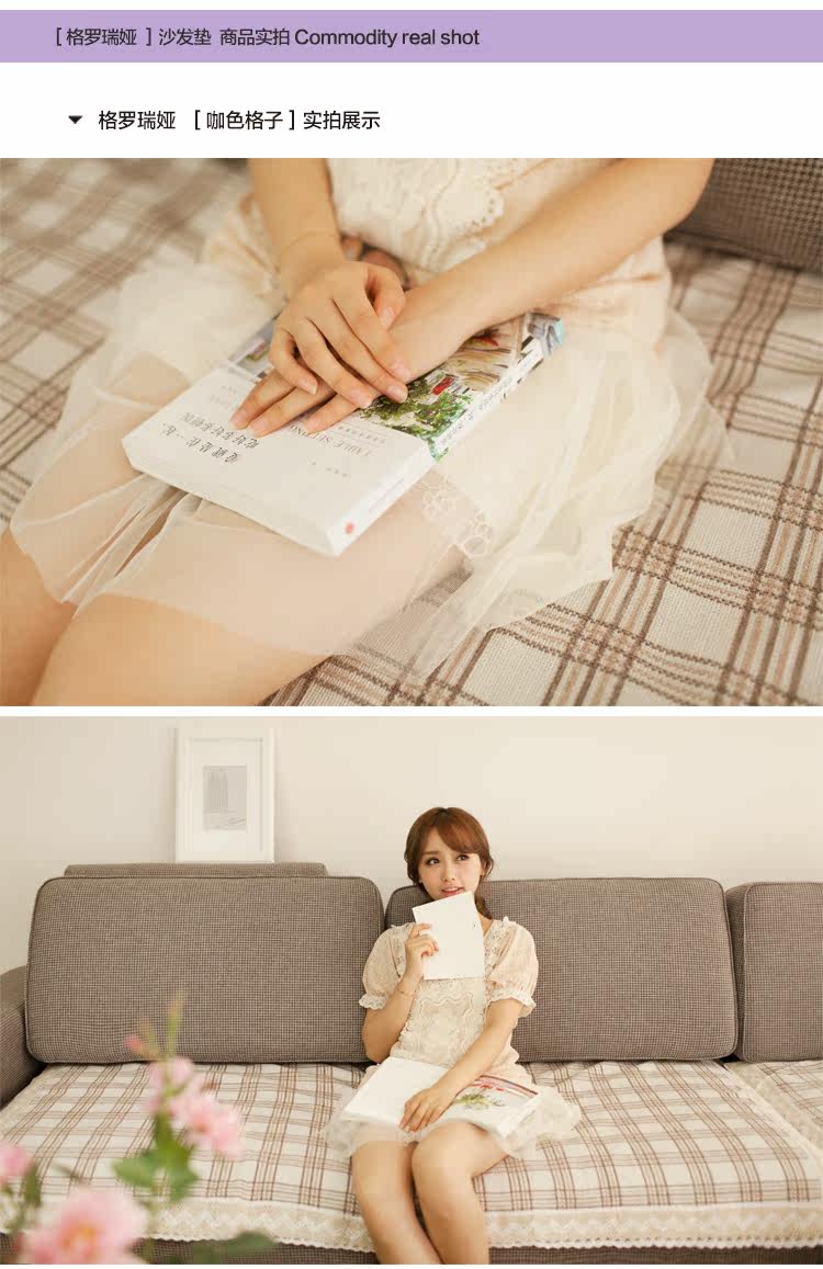 田园布艺沙发巾 现代简约客厅沙发罩 蕾丝花边格子防滑组合沙发垫