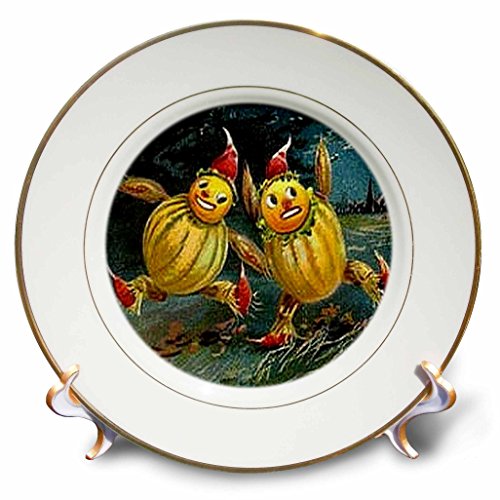 3dRose cp_6046_1 Vintage Halloween Scarecrows Running Porcelain Plate, 8-Inch