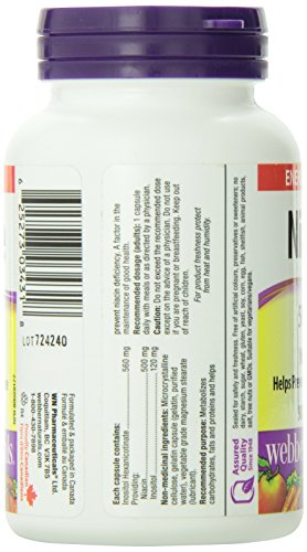 -. Binding : Health and Beauty -. Brand : Webber Naturals -. EAN : 0625273034318 -. Feature : Niacin vitamin B3 is an important factor in the health of our circulatory system / Niacin has also been used to improve blood flow in the treatment of intermittent claudication and Raynaud's phenomenon / It not only lowers total cholesterol but also LDL cholesterol, lipoprotein, triglyceride and fibrinogen levels / Works mainly by inhibiting the production of cholesterol in the liver / Includes 90 capsules per pack -. IsAdultProduct : 0 -. Label : Webber Naturals -. Manufacturer : Webber Naturals -. MPN : 709410 -. PackageQuantity : 1 -. PartNumber : 709410 -. ProductGroup : Health and Beauty -. ProductTypeName : HEALTH_PERSONAL_CARE -. Publisher : Webber Naturals -. Studio : Webber Naturals -. Title : Webber Naturals No Flush Niacin Vitamin B3 Capsule, 500mg 90 Count -. UPC : 625273034318