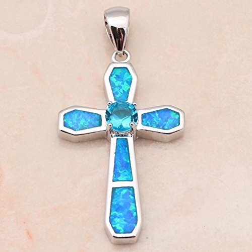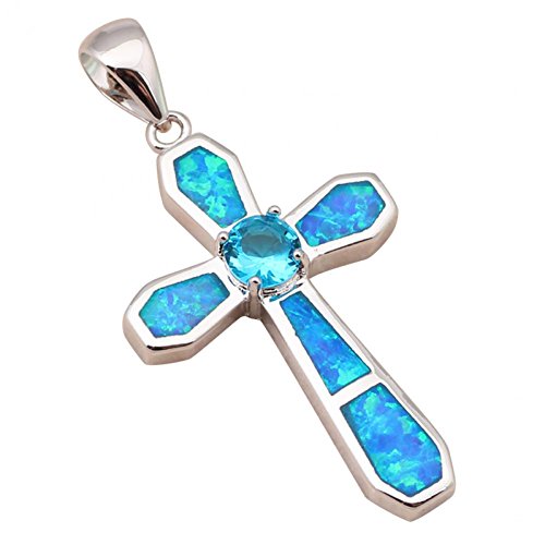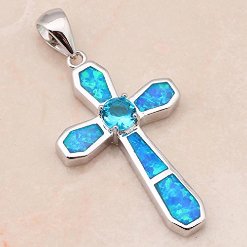 -. Title : BMALL Jewelry Maxi Necklace Cross Blue Fire Opal 925 Silver Pendants Blue Crystal Fashion Jewelry Op517A